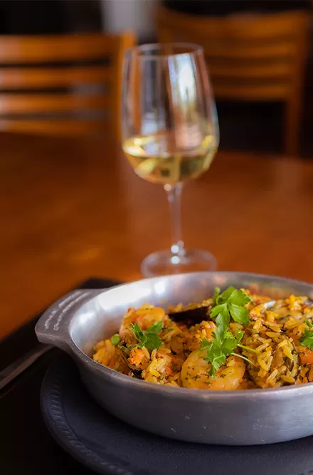 Gastronomia de excelência com menu A La Carte e Executivo, acompanhada de uma carta de vinhos selecionada na nossa adega climatizada.